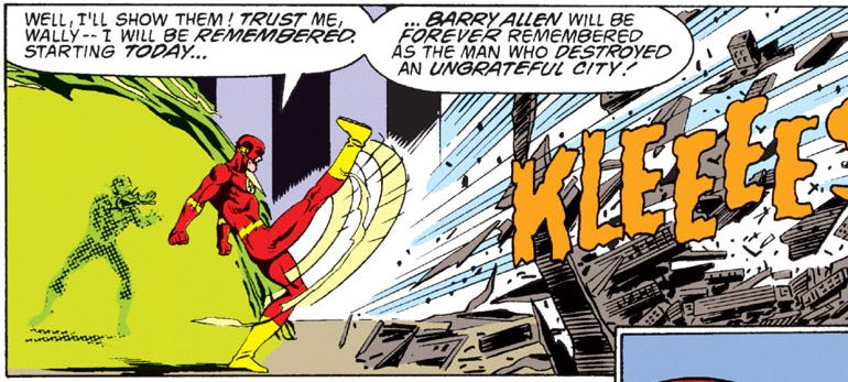 Em The Flash 76, Wally fica profundamente decepcionado ao ser traído e abandonado para morrer em uma armadilha pelo tio, que o acusa de querer ofuscá-lo e de roubar a identidade de Flash. Mais que isso, tomado pela raiva, Barry garante que os cidadãos de Central City vão se arrepender de terem se esquecido dele: “Barry Allen será eternamente lembrado como o homem que destruiu uma cidade ingrata!”, ameaça.