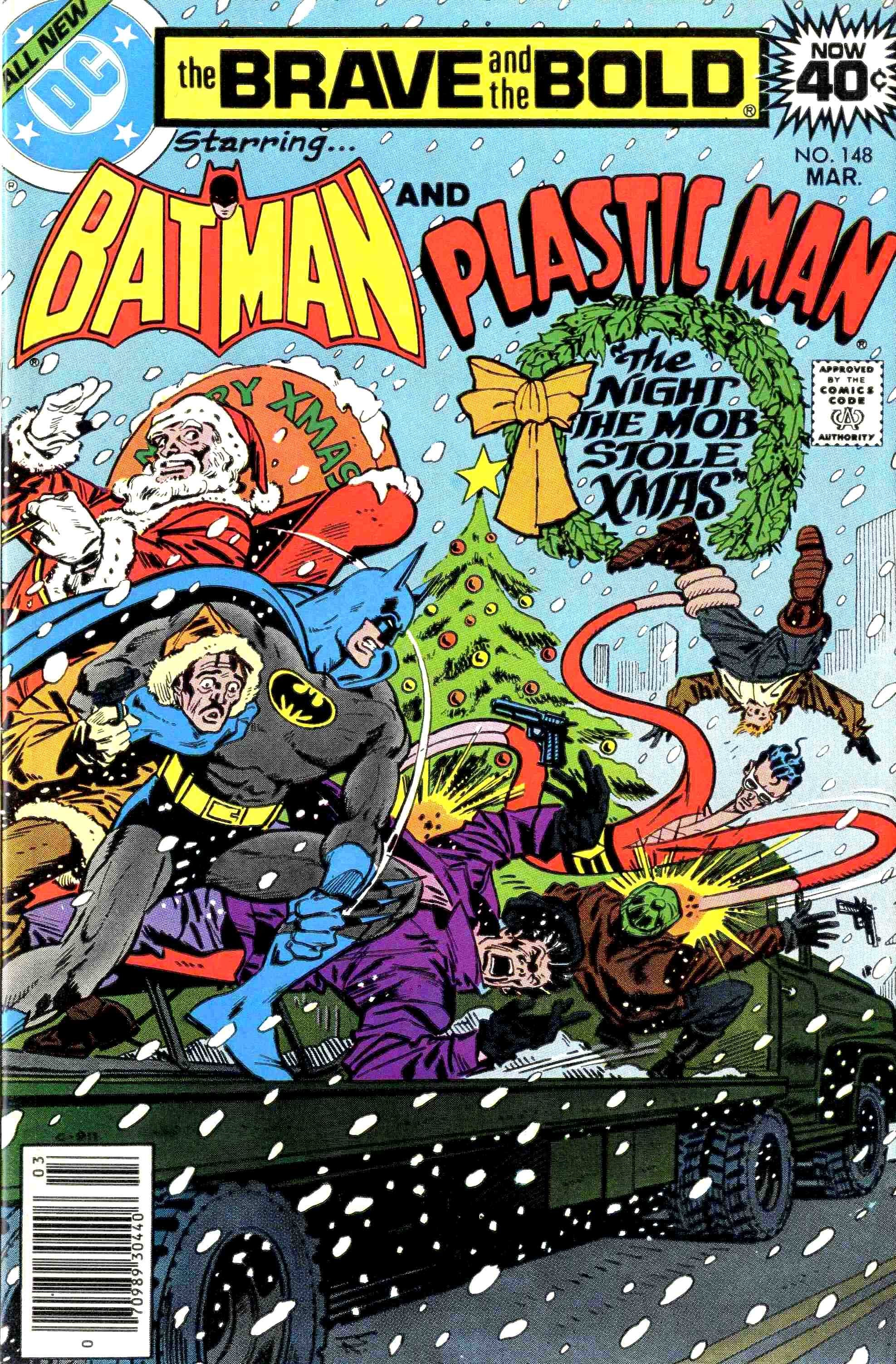 Esta foi a edição 148 da newsletter SOC TUM POW e, com ela, trago a capa de mesmo número de algum gibi. A escolhida é a de The Brave and the Bold 148 (1979), que chega em clima de Natal… pelo menos, em clima de Natal em Gotham City, onde as coisas são mais tensas. A imagem é desenhada e finalizada por Jim Aparo, um dos artistas mais longevos e marcantes das HQs do Batman. Sua versão do Homem-Morcego marcou toda uma geração de leitores, que reconhecem facilmente o “Batman de Jim Aparo”. Acho impressionante seu talento em colocar tanta ação e tantos elementos em apenas uma porção da página – repare que toda a pancadaria e personagens estão concentrados entre o título da revista e o espaço acima das rodas do caminhão. Essa capa foi um grande presente natalino entregue aos leitores da época. (e um presente tardio para quem a conheceu anos depois).